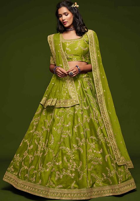 Make a graceful statement in this Neon Yellow Dori Sequin Embroidered Art Silk Lehenga Set, featuring intricate embroidery on luxurious silk. Ideal for special occasions, this elegant ensemble combines timeless design with rich texture for a truly regal look.